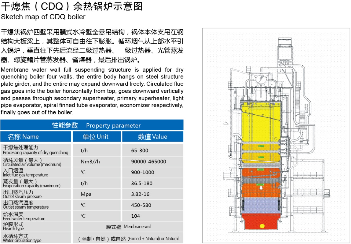 公司干熄焦余熱鍋爐產(chǎn)品在吸收國外先進(jìn)技術(shù)和經(jīng)驗(yàn)基礎(chǔ)上,結(jié)合我國具體實(shí)際,在設(shè)計(jì)、工藝、材料、制造及檢驗(yàn)等環(huán)節(jié)嚴(yán)格控制,對鍋爐中最薄弱的環(huán)節(jié)采取特殊防護(hù)措施,以最大限度提高鍋爐熱效率和使用壽命;公司研制的高溫高壓干熄焦余熱鍋爐被列入國家863計(jì)劃、國家火炬計(jì)劃和江蘇省科技成果轉(zhuǎn)化專項(xiàng)資金扶持,項(xiàng)目研究成果榮獲國家科技進(jìn)步二等獎、中國冶金科學(xué)技術(shù)獎一等獎;同時(shí)高溫高壓干熄焦余熱鍋爐被列入國家重點(diǎn)新產(chǎn)品和省高新技術(shù)產(chǎn)品,突破了余熱鍋爐防腐、密封、防膨脹等多項(xiàng)專利技術(shù),同時(shí)參與了YB/T 4255-2012《干熄焦節(jié)能技術(shù)規(guī)范》行業(yè)技術(shù)標(biāo)準(zhǔn)的制定;通過技術(shù)專利化、專利標(biāo)準(zhǔn)化戰(zhàn)略,構(gòu)筑產(chǎn)品市場核心競爭力。