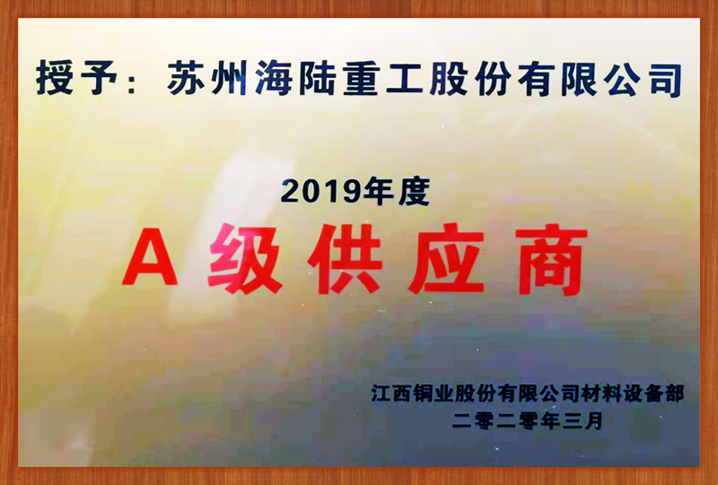 海陸重工被評為“2019年度江銅A級供應商”